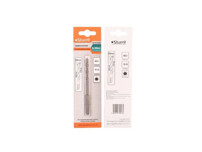 Сверло по бетону с твердосплавной напайкой и шестигранным хвостовиком 5x100 мм Sturm 1055-06-05x100
