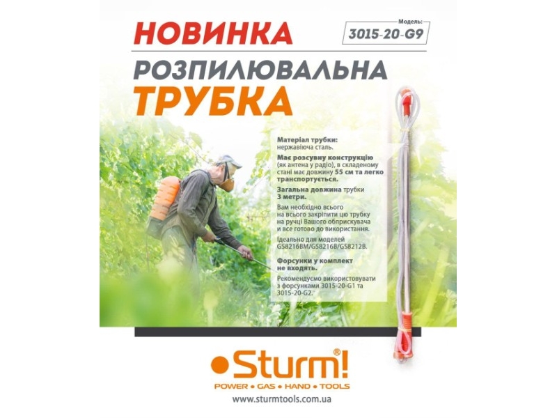Телескопическая штанга для опрыскивания высоких деревьев (55см - 3м) Sturm 3015-20-G9