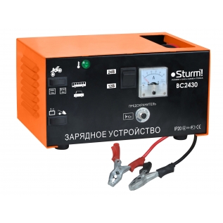 Зарядное устройство Sturm BC2430 - удобное и простое в эксплуатации зарядное устройство, с помощью которого вы легко произведете зарядку аккумуляторов. Однофазное портативное зарядное устройство для аккумуляторов напряжением 24В.- Защита от перегрузок и неправильного подключения,