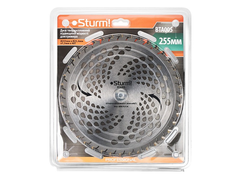 Диск повышенной прочности к триммеру Professional 255мм 40 зубьев Sturm BTA005