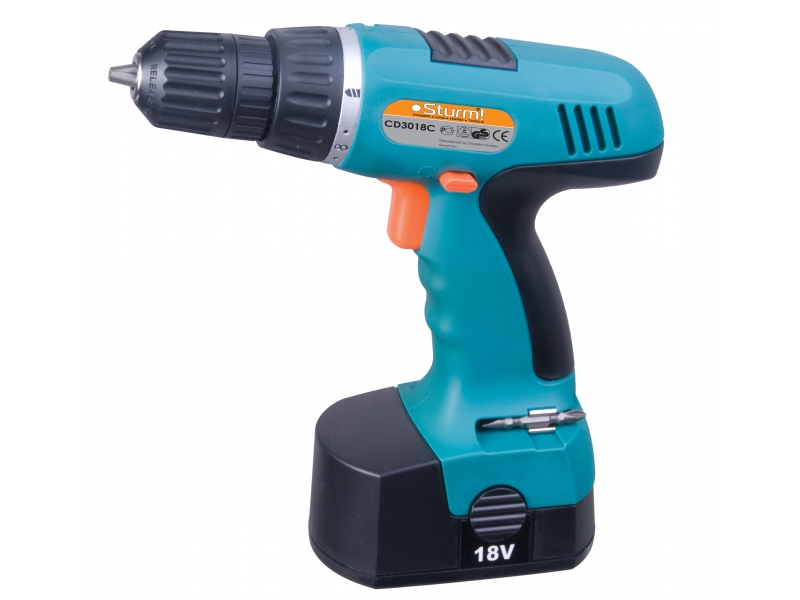 Дрель-шуруповерт Sturm CD3018C - доступный по цене, простой в эксплуатации аккумуляторный инструмент бытового уровня. Может использоваться в качестве дрели для сверления отверстий диаметром до 20 мм в древесине и до 10 мм в металле, или для работ с крепежем в качестве шуруповерта. Выбор параметров работы осуществляется при помощи переключателя крутящего момента на 16 ступеней, имеющего отдельную ступень режима сверления. В качестве источника питания в дрели Sturm CD3018C используется аккумуляторная батарея Ni-Cd типа емкостью 1,3 А/час с рабочим напряжением 18 В, отличающаяся относительно небольшим весом и высокими рабочими характеристиками. Скорость вращения регулируется в диапазоне 0-900 об/мин, контролируется при помощи электроники. Включение реверсного режима осуществляется при помощи удобного в применении переключателя. Для фиксации насадок применяется бесключевой патрон с диаметром зажима 0,8-10 мм. Тормоз двигателя дрели Sturm CD3018C предотвращает чрезмерное затягивание крепежа. На рукоятке дрели размещены эластичные накладки, снижающие воздействие вибрации на руки пользователя и препятствуют их соскальзыванию при работе. В корпусе оборудована ниша для хранения бит. Инструмент поставляется в удобном пластиковом кейсе.