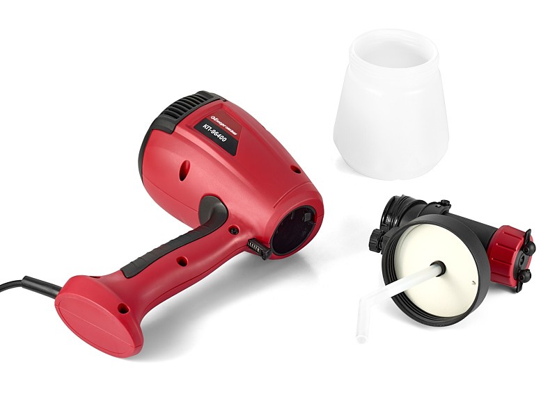 Краскопульт Енергомаш КП-96400 используется в быту для равномерной покраски плоских и криволинейных поверхностей. Небольшие габариты и вес, удобная прорезиненная рукоятка облегчаю работу с инструментом. Вместительный бачок 700 мл для краски обеспечивает длительный рабочий цикл без дозаправки. Специальный распылитель равномерно наносит краску на поверхность и может быть установлен в трех различных положениях для изменения площади пятна окраски. Возможно изменение интенсивности потока краски за счет регулируемой спусковой кнопки.