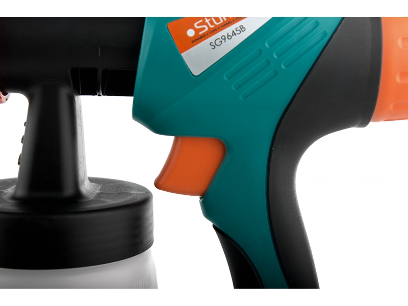 Краскопульт Sturm! SG9645B - производительное, удобное в эксплуатации устройство для внутренних и наружных окрасочных работ. Предназначен для работы с быстросохнущими красками на водной основе, лаками и полировками, может использоваться в авторемонтных мастерских, в судостроении и судоремонте, а также при производстве бытовых покрасочных работ. Коллекторный двигатель мощностью 450 Вт с турбиной, установленный на краскопульте Sturm! SG9645B, выполненный по технологии подачи большого объема воздуха при малом давлении, дает возможность быстро и качественно выполнить большой объем работ. Возможность ручной регулировки расхода краски непосредственно при окраске повышает качество и снижает расход жидкости. Бачок 0,6 л обеспечивает длительную непрерывную работу. В краскопульте Sturm! SG9645B установлен воздушный фильтр, препятствующий попаданию пыли внутрь, легкий доступ к фильтру дает возможность быстро его очистить при необходимости. Относительная компактность и небольшой вес (2,4 кг) делают устройство удобным в работе и транспортировке.