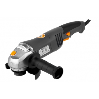 Угловая шлифовальная машина Энергомаш УШМ-90111 - мощный, простой в управлении и эксплуатации инструмент бытового уровня. Предназначен для зачистных, отрезных, шлифовальных работ с металлом и другими материалами. В работе используются отрезные диски и шлифовальные круги диаметром 125 мм. Скорость вращения круга в режиме холостого хода 11000 об/мин. В шлифмашине Энергомаш УШМ-90111 установлен двигатель мощностью 1100 Вт. Корпус редуктора для лучшего теплоотвода и предупреждения перегрева узлов и механизмов изготовлен из металла. Быструю смену оснастки обеспечивает система блокировки шпинделя. Для лучшей управляемости и комфортности в работе основная рукоятка выполнена удлиненной, эластичные накладки на ней служат для хорошего хвата и снижают вредное влияние вибрации на руки пользователя. Для уверенной безопасной работы двумя руками шлифмашина Энергомаш УШМ-90111 снабжена дополнительной боковой рукояткой, устанавливаемой с левой или правой стороны корпуса. При необходимости продолжительной непрерывной работы используется система блокировки включателя.