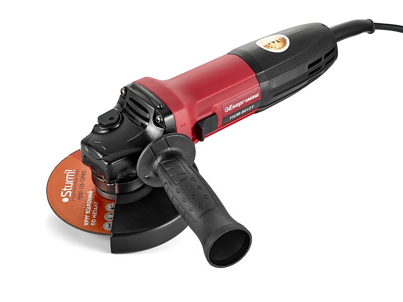 Угловая шлифовальная машина оборудована электродвигателем мощностью 1000 Вт, который обеспечивает скорость вращения 10000 об/мин. Для работы используется диск диаметром 125 мм. Диск закрыт специальным защитным кожухом, который обеспечивает максимальную безопасность оператору во время работы. Болгарка оборудована кнопкой блокировки шпинделя для быстрой замены круга и имеет удобную 2-х позиционную дополнительную рукоятку. Болгарка УШМ-9012Т так же имеет фиксацию клавиши включателя, для удобства при продолжительной работе.